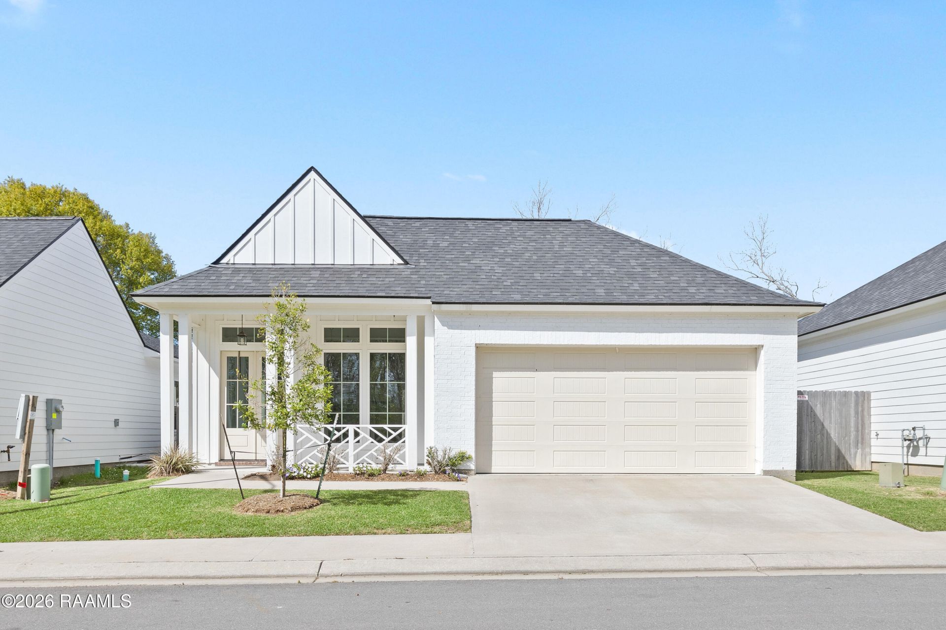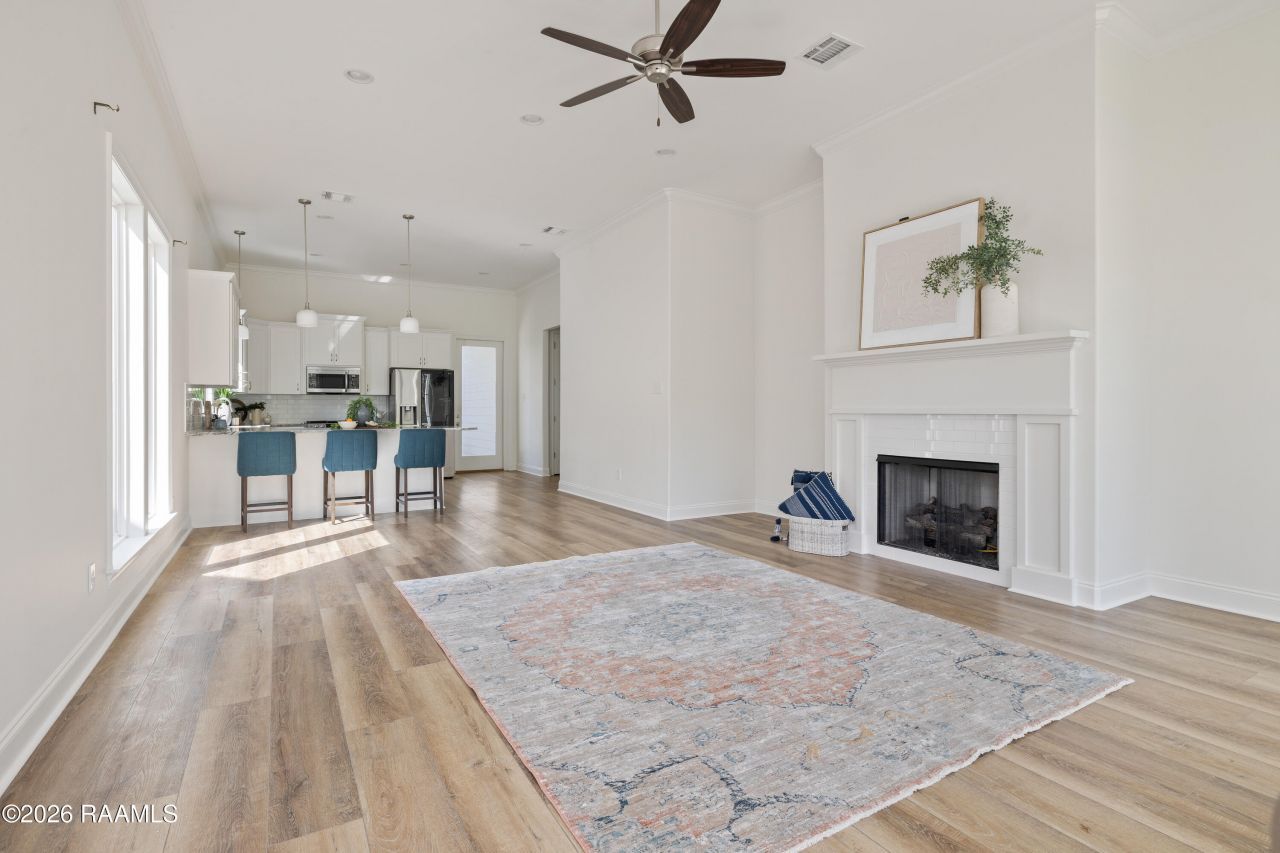 Guilliot Grove is an exclusive development by Rajun Cajun Construction offering a soon-to-be-gated enclave of just 70 homes. Here, effortless living is a guarantee, thanks to a comprehensive HOA that curates the communitys beauty for you. Services include complete lawn maintenance (front and back yard), seasonal flower bed plantings, and the care of the private road and entrance pond. Inside, the kitchen is appointed with custom soft-close cabinetry, gleaming granite countertops, and stainless steel appliances. The heart of the home is the living area, anchored by a cozy gas-log fireplace. Retreat to the serene primary suite, which boasts a tiled walk-in shower, and separate soaking tub and a spacious walk-in closet. With 3 bedrooms and 2 bathrooms, the intelligent layout flows beautifully to a relaxing outdoor patio which is fully secured by a 6-foot privacy fence. Perfectly positioned near the Youngsville Sports Complex and highly sought after school district, you get the best of both worlds: quiet, private living with premier recreation just around the corner. Located in Flood Zone X.