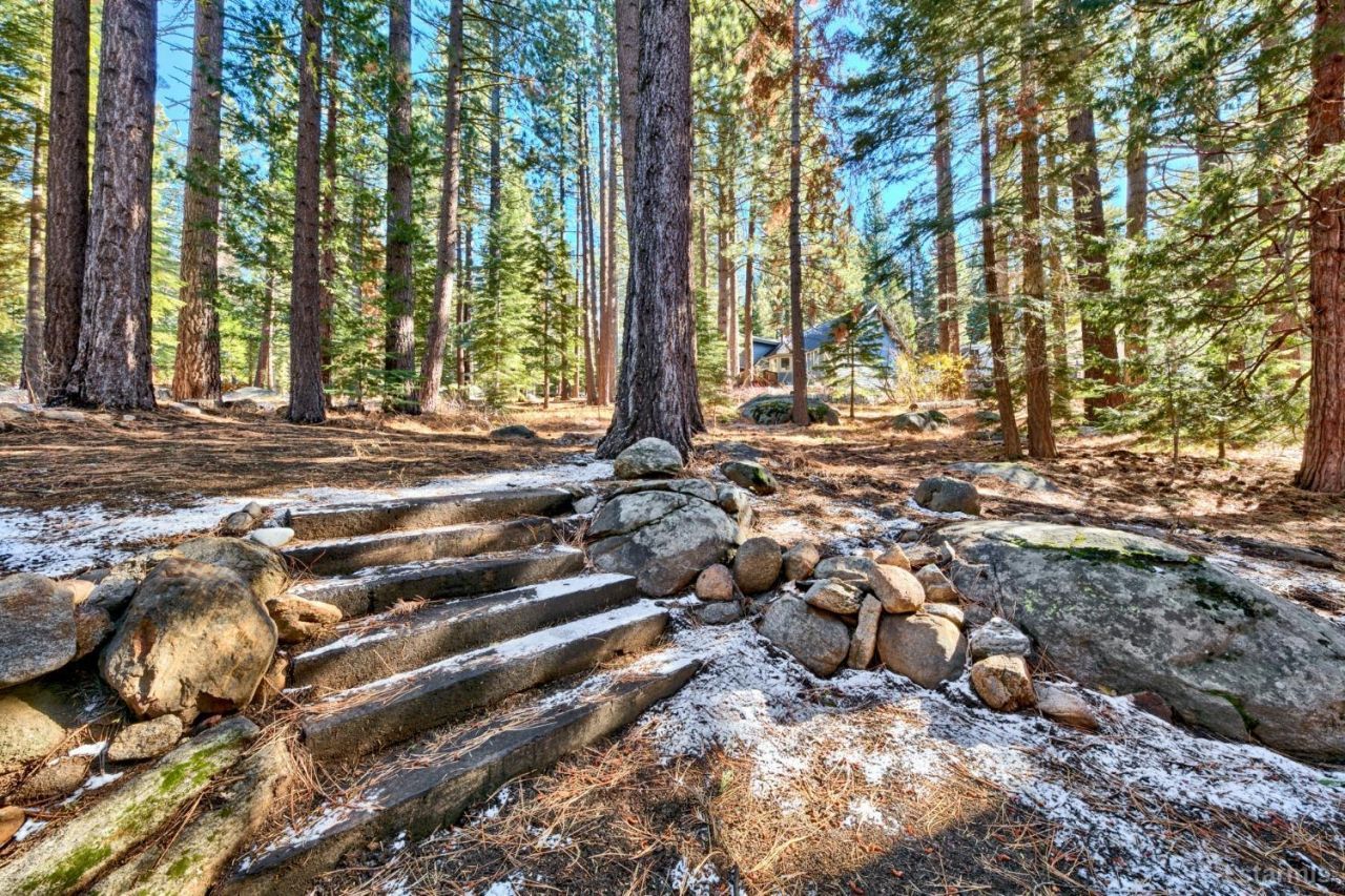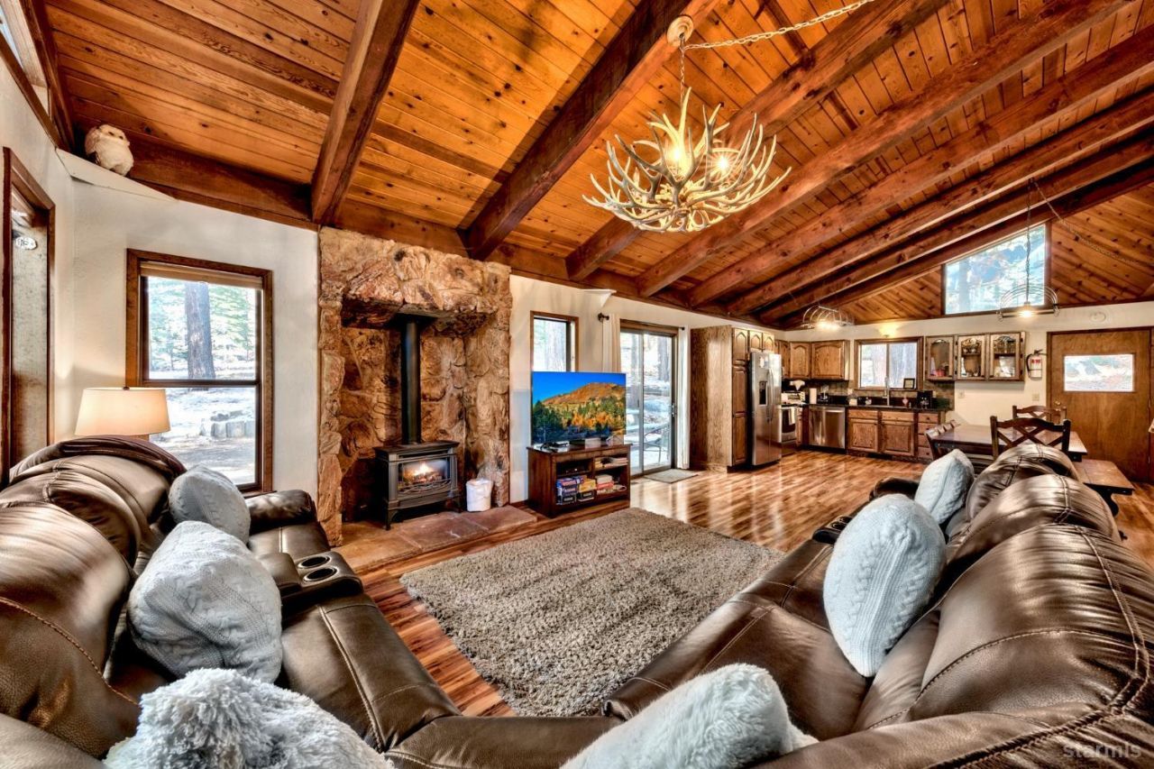 Charming split-level Tahoe chalet located in the desirable Tahoe Paradise neighborhood. This property enjoys an exceptional setting with Conservancy land on two sides and views overlooking the scenic Tahoe Paradise Golf Course, creating a peaceful and private mountain backdrop.Inside, the main living area features tall open beam ceilings that bring in plenty of natural light and give the space that classic Tahoe feel. Laminate flooring runs through the living area, and a gas fireplace adds warmth and comfort on cooler mountain evenings.The kitchen is equipped with granite slab counters, stainless steel appliances, and solid oak cabinetry. Just off the kitchen is a spacious side deck, ideal for relaxing or enjoying the quiet wooded surroundings.The primary bedroom offers two closets and a private balcony with views of the golf course and Mt. Tallac. With four bedrooms plus an additional bonus room that could serve as a den, office, or extra sleeping area, the home offers plenty of flexibility for family and guests.Conveniently located just minutes from Highway 50, this home provides easy access to both Heavenly and Sierra-at-Tahoe ski resorts, as well as the beaches and recreation of Lake Tahoe.