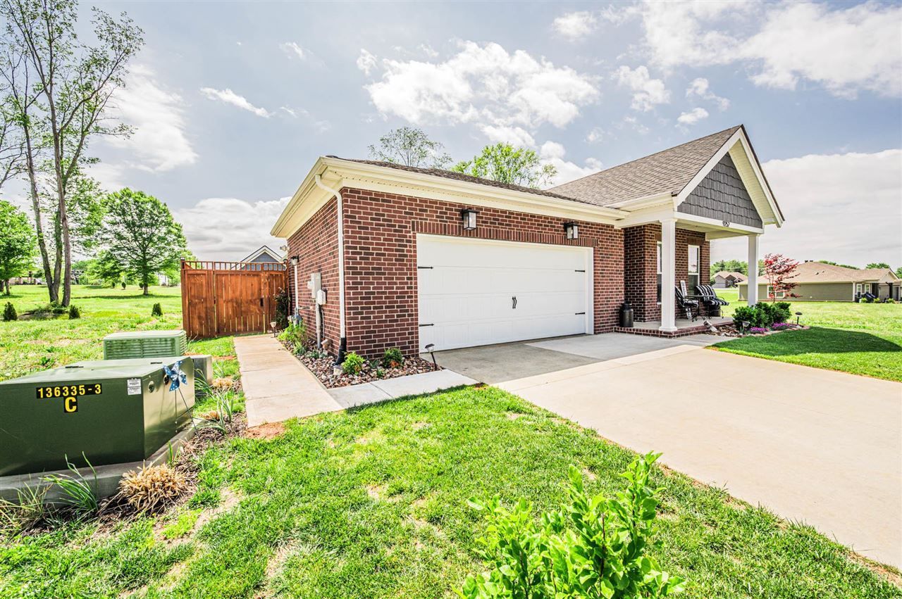 Welcome to easy living in the desirable "The meadows of Dove Pointe" subdivision in Alvaton! This charming 3 bedroom 2 bath brick home, offers the perfect blend of comfort, style, and low maintenance convenience. Step inside to a bright and airy living space and kitchen with LVT, granite counters, extra seating at the bar, and pantry offering both style and everyday practicality. The split bedroom floorplan is designed for both privacy and functionality. The inviting living area opens to a 15 x 12 covered back patio, creating the ideal setting for relaxing mornings or peaceful evening outdoors! The backyard is thoughtfully designed with privacy fencing, landscaping, and added versatility, with a workshop/storage shed complete with an overhead door and decking. An extended size garage with a side entry that provides extra space for storage, or parking. With its' maintenance-free exterior and manageable layout, this home is an excellent choice for those buying their first home or looking to downsize without sacrificing quality or charm. Move-in ready and beautifully maintained - this is the lifestyle upgrade you've been waiting for!